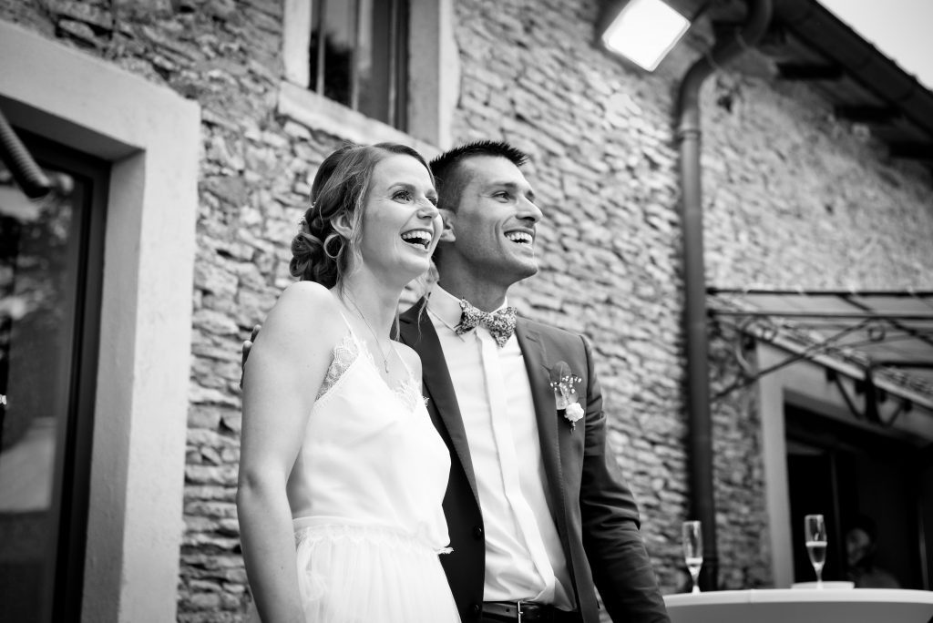 Je m’égare, revenons donc à notre histoire. Fanny et Charlie se sont retrouvés et se sont découverts en toute intimité afin de garder ce moment d’émotion pour eux, nous en avons profité pour réaliser la séance photos de couple dans les ruelles allentour avant de nous rendre à la mairie de Chatillon sur Chalaronne puis à l’Eglise de Belleville. Le vin d’honneur et la soirée se sont ensuite déroulés au domaine de Bellevue à Anse, dans une ambiance chaleureuse et festive.